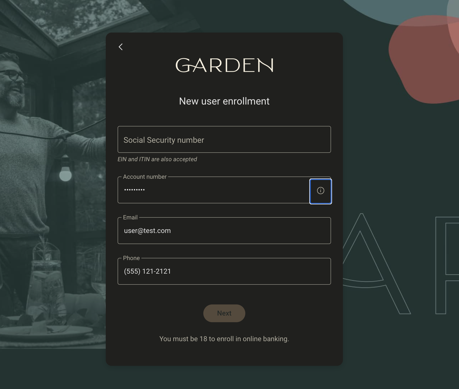 The user will be taken to the Banno Online enrollment screen, with the information supplied in the form action pre-filled into the appropriate fields.